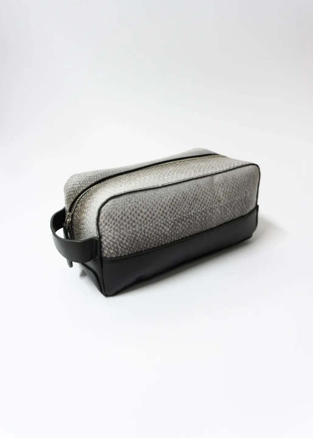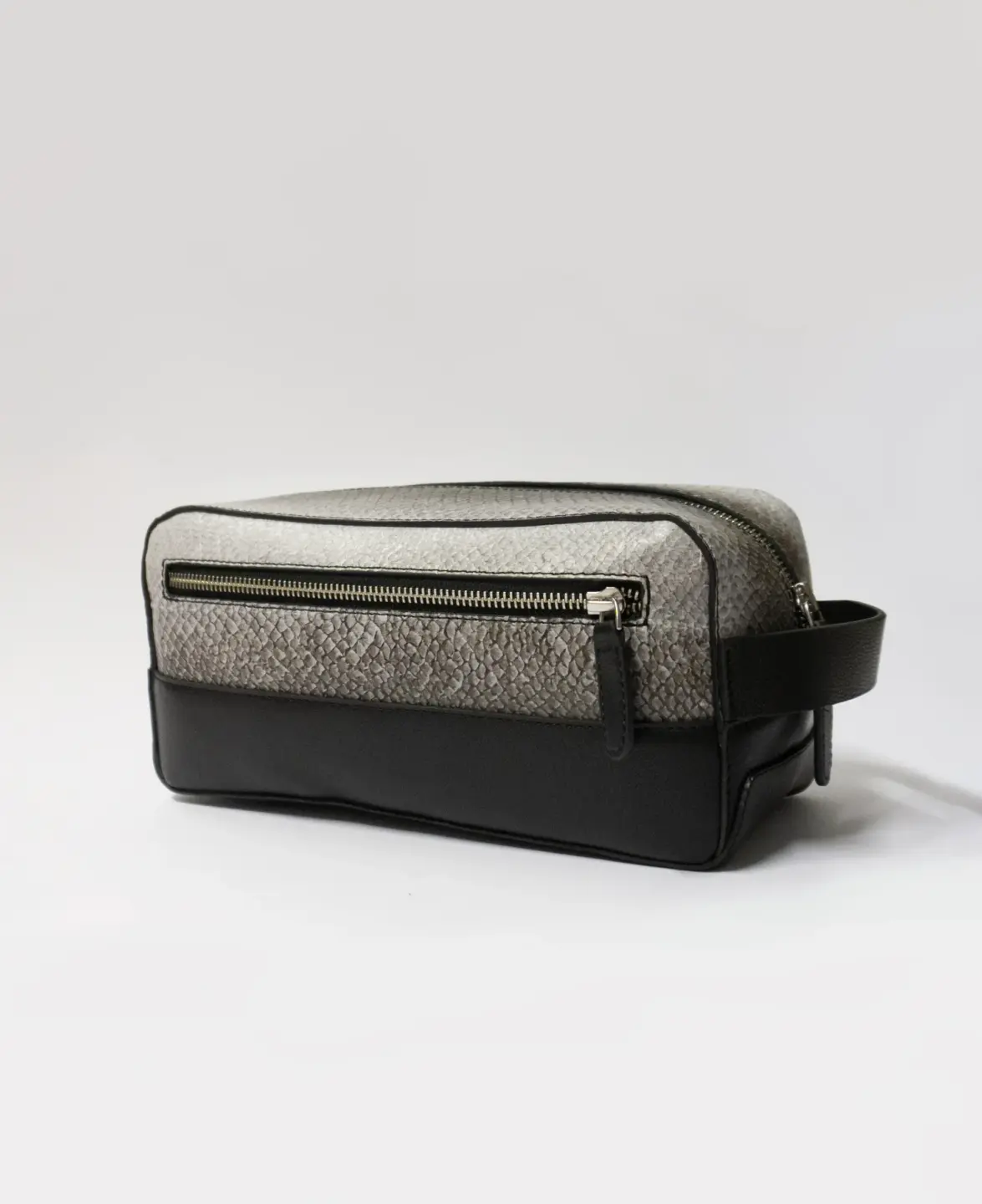 Straumur is a durable toiletry bag crafted from Icelandic material—Atlantic fish leather. This practical cosmetic bag serves as an ideal companion for travel. The natural pattern of this durable yet soft leather beautifully narrates the story of a nation that has flourished in harmony with the sea.