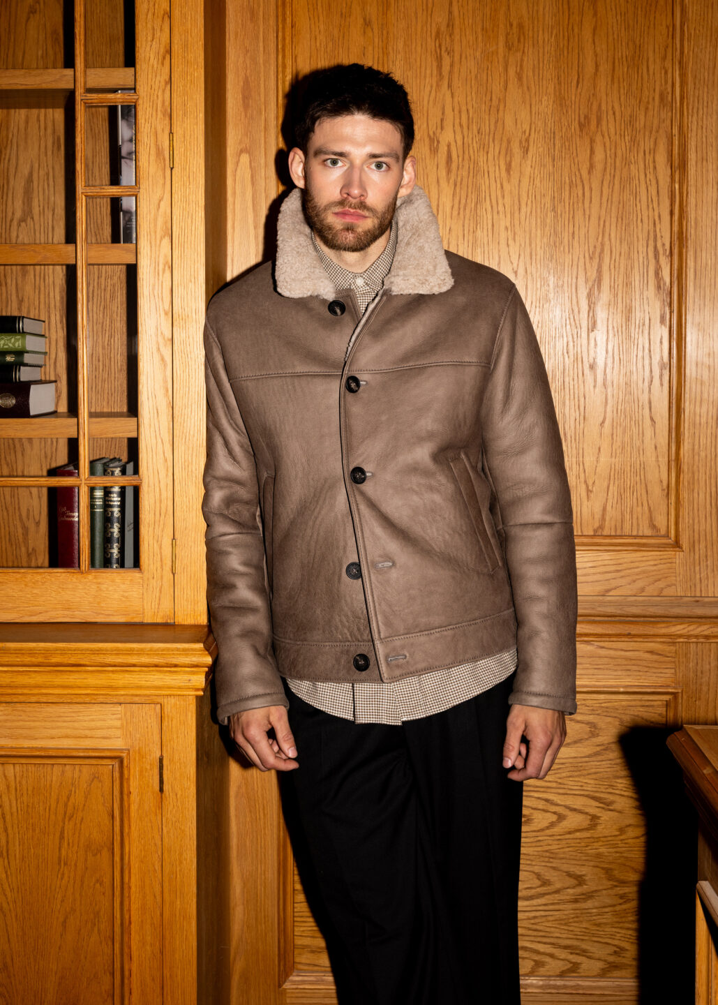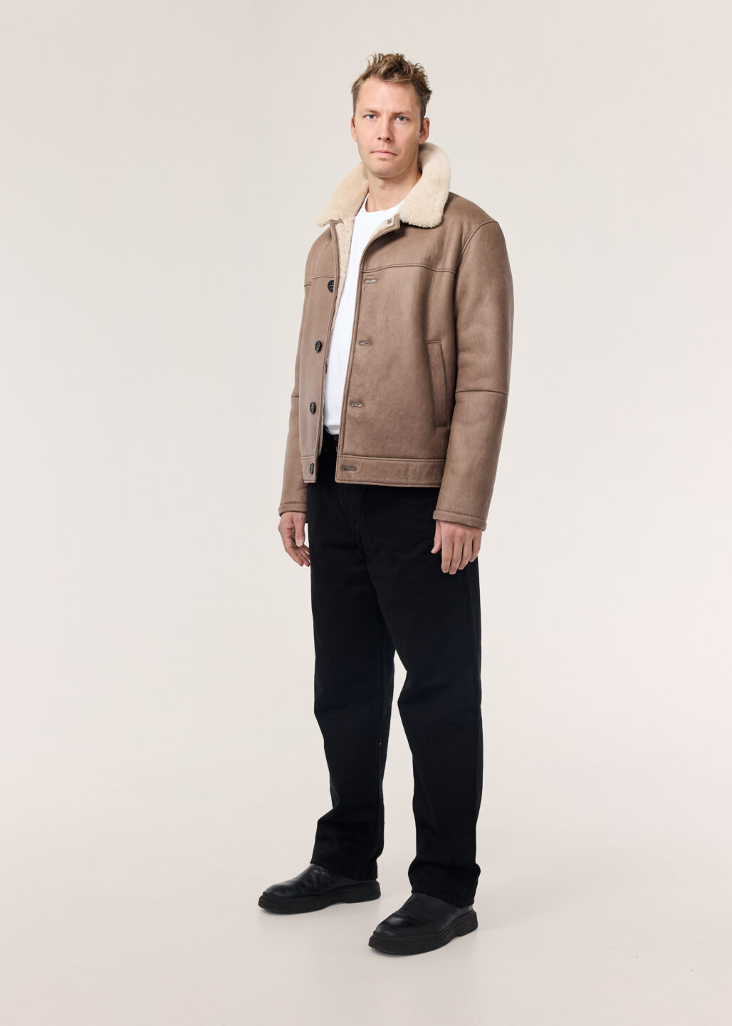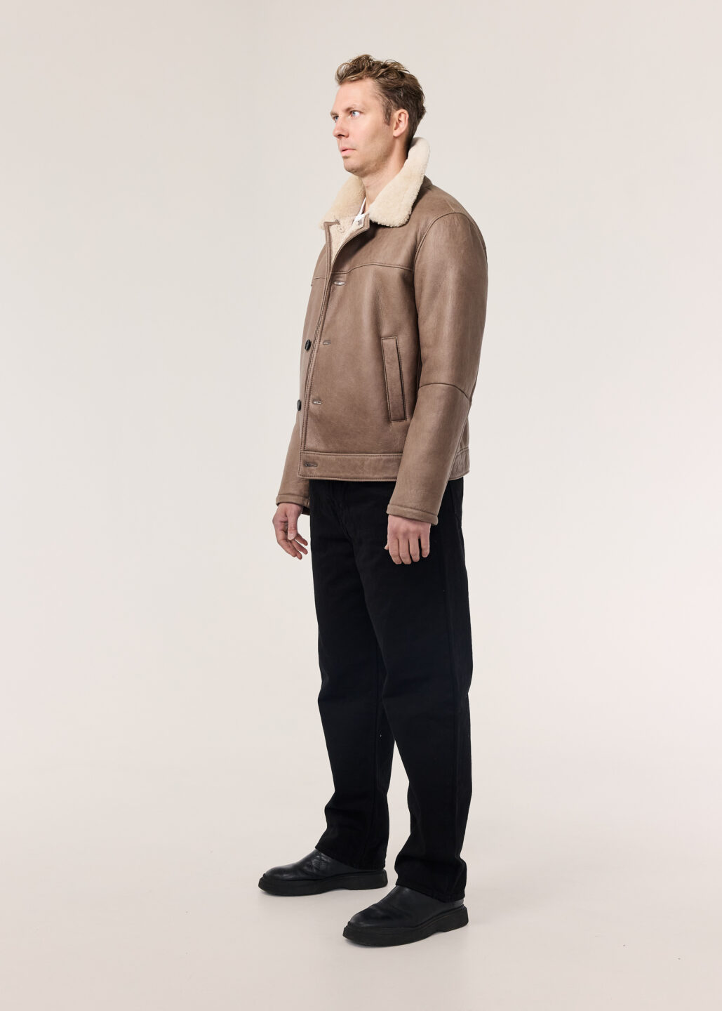 Nói er klassískur, stuttur mokkajakki framleiddur úr hágæða, mjúku lambaskinni. Jakkinn er prýddur smáatriðum úr lambaskinninu í fóðrinu. Kraginn fellur fallega niður á axlirnar. Tölurnar að framan er gefa jakkanum fallegan blæ en hægt er að stílisera jakkann á fjölbreyttan hátt. Nói er fullkomin viðbót við fataskápinn.